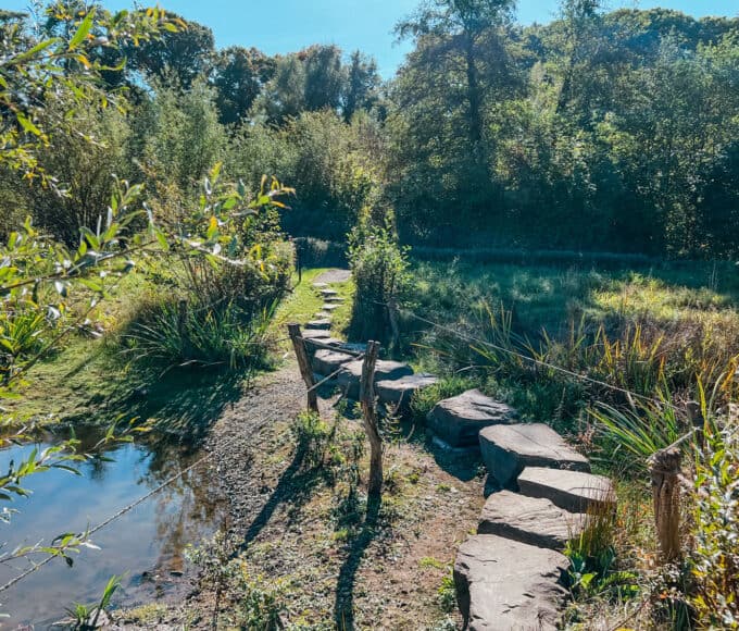 Zurück auf der Wiese wird die Landzunge schmaler. Die Halbinsel wird übrigens auch „Katzenkopf“ genannt. Schätzungsweise aus dem Grund, weil die Brücke an der Spitze „Katzenbuckel“ bezeichnet wird.