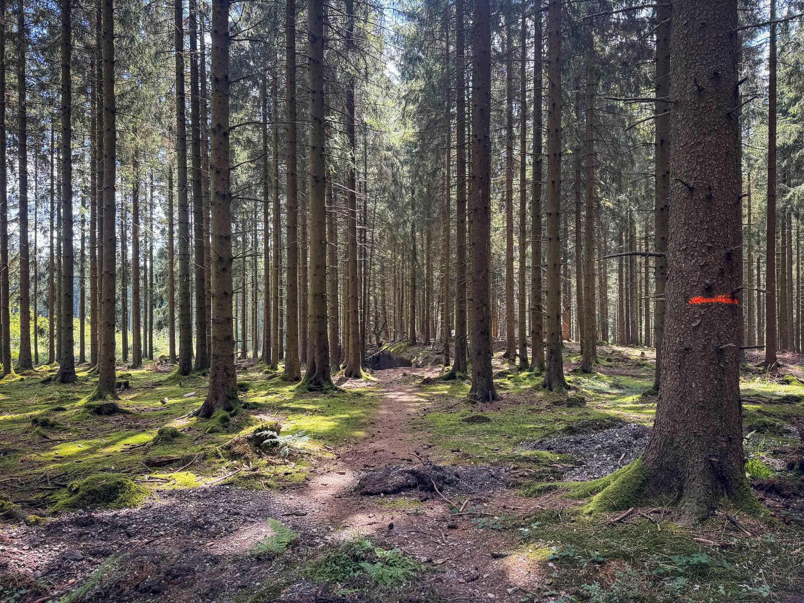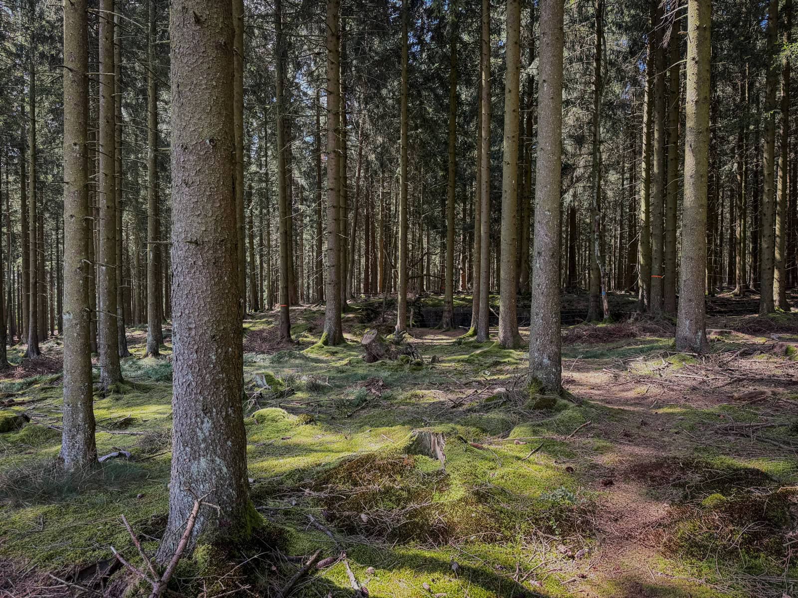 Nach ein paar letzten Blicken in den stillen Wald geht es wieder zurück auf den Hauptweg. Auf derselben Strecke bist du in gut zehn Minuten wieder am Parkplatz Jägerhausstraße, sofern du keine längere Wanderung anschließen möchtest.